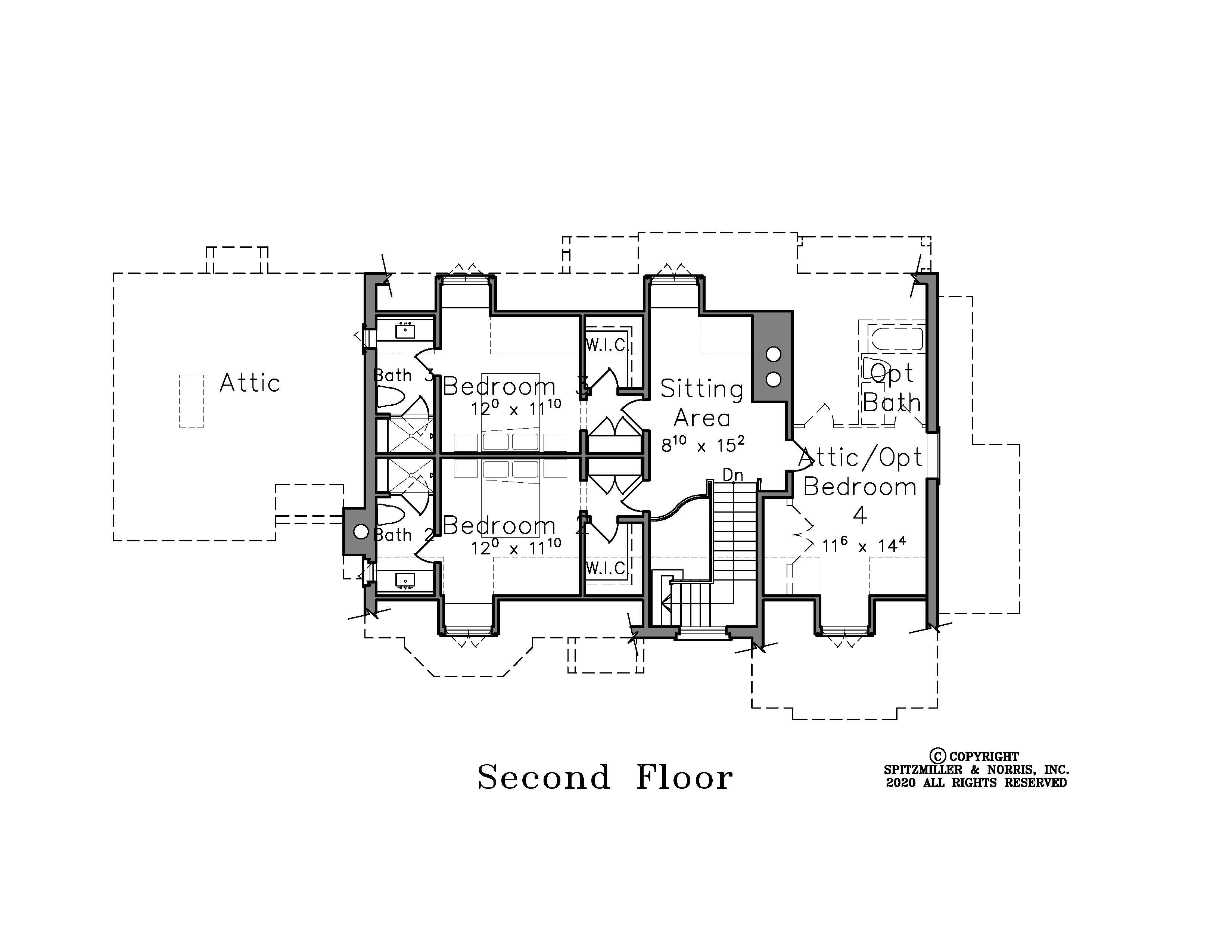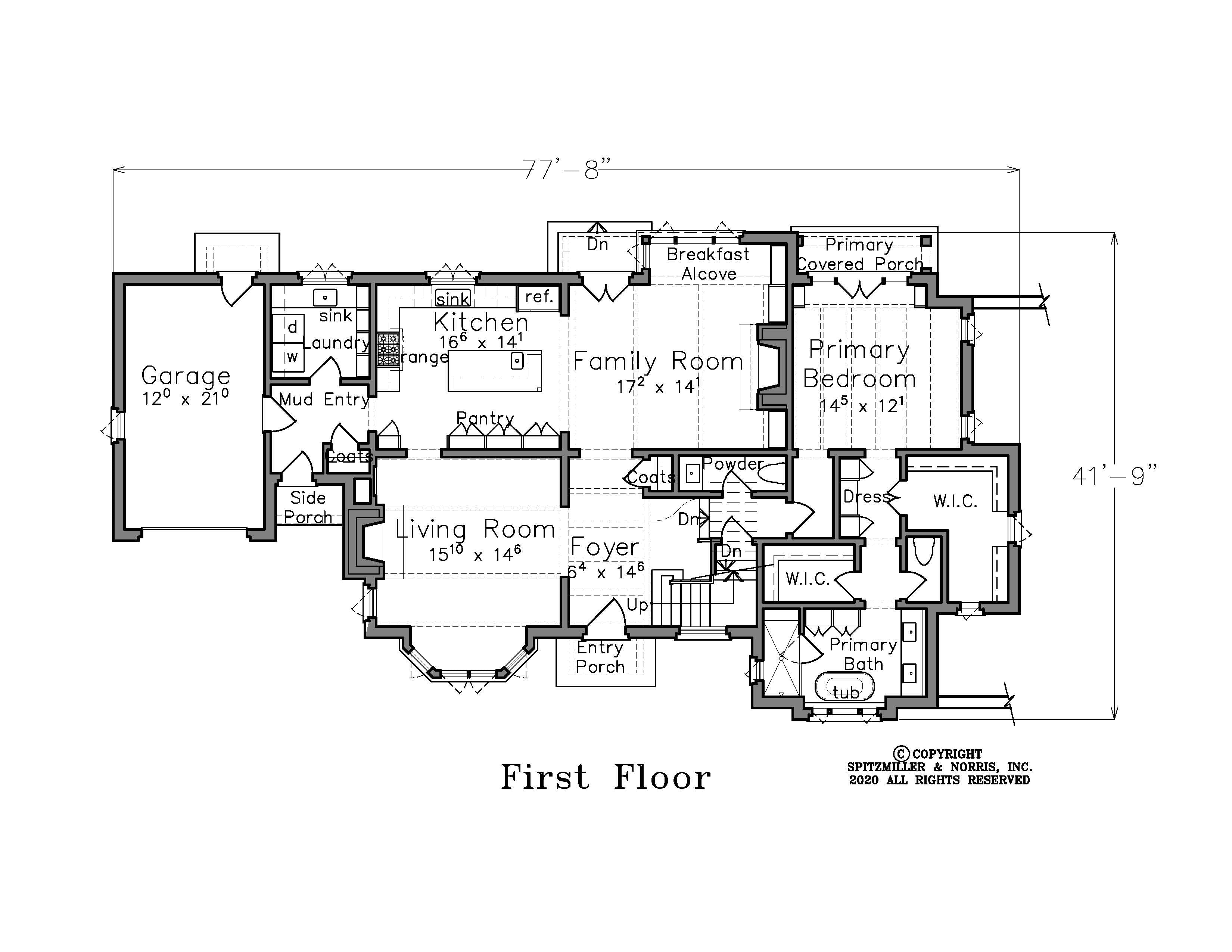 To the left is the Living Room where the focal point is the formal fireplace flanked by windows. Wood beams in the ceiling add attention to detail. A bay on the front makes for a striking statement allowing for more light. The Family Room and Kitchen have a gracious spirit by being open to one another and providing easy everyday flow. The Family Room has a fireplace and features wood beams on the ceiling offering warmth and strength of character. The Breakfast Alcove is an inviting space adding to the function of the Family Room. A large island is the central feature of the Kitchen which also has a range and hood for a room which will turn heads and be fully functional. There is no shortage of storage with a full wall of floor to ceiling built ins. A busy schedule is helped with a Mud Entry which has space for a closet, hooks and a door out to the Friend’s Side Porch. The Laundry Room is fitted with a counter, sink and again, a full wall of storage.